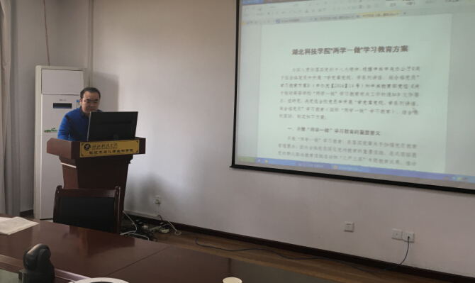 院总支副书记张规富带领全体党员学习《湖北科技学院“两学一做”学习教育方案》