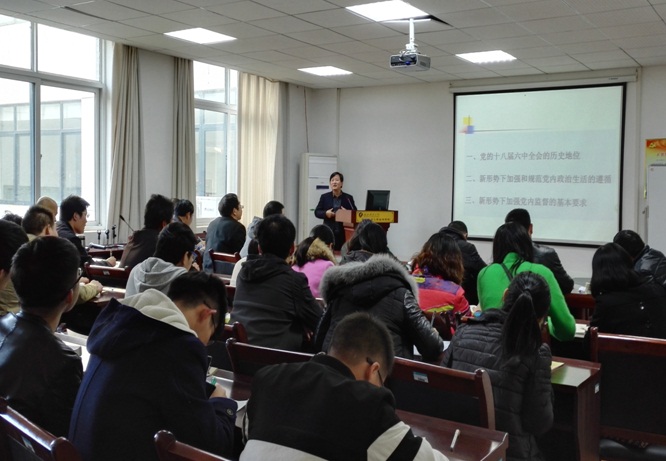 孙院长指出,当前和今后一段时间内,我院党务的重要工作就是学习宣传贯彻六中全会精神。一是要抓好分层次的学习教育。院领导班子成员要带头学习全会精神,以上率下,带学领学;着力抓好中层干部的学习,提高中层干部把中央从严治党要求落实到各项工作中的自觉性和坚定性;把六中全会精神纳入“两课”教学内容和教职工理论学习计划,引导师生党员深入学习;利用多种形式宣传好六中全会精神。二是抓好《准则》和《条例》的贯彻落实。进一步规范党内政治生活;切实推进全面从严治党;深入推进“两学一做”学习教育,抓好党员的日常教育管理。