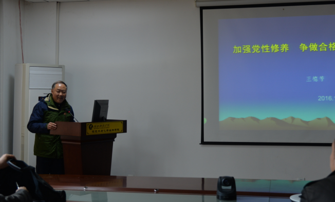 (通讯员 余光强)2016年12月7日下午4:00,老干处党支部书记王德芳同志以“加强党性修养、争做合格党员”为题,在院二楼会议室为我们全体党员领导老师和入党积极分子讲党课。