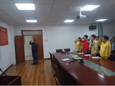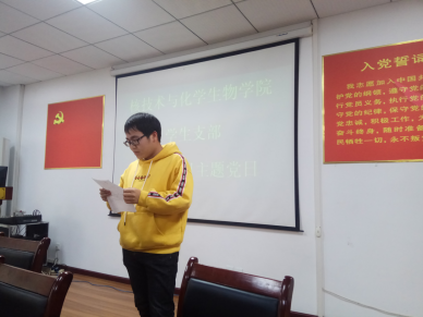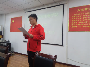 随后学生支部党员同志对三位同学进行了评议,对三们同学在预备期的表给予了认可,并指出了一些不足和希望他们以后要努力的方向;然后学生支部党员同志对三位同学进行了表决,三位同学都全票通过,一致同意三们同学近期转正。最后,支部书记周皎石带领新党员进行了入党宣誓。