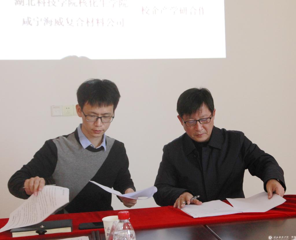 10月22日,yl8cc永利官网党总支与咸宁海威复合材料制品有限公司党支部签订结对共建协议。校党委副书记张廷,咸宁高新区管委会副主任徐望,咸宁市科技局副局长黄宏光,海威公司总经理崔思杰,校党委组织部常务副部长李志雄,yl8cc永利官网党总支书记、院长孙绍发、常务副书记张规富、教师代表杜纪富参加活动。