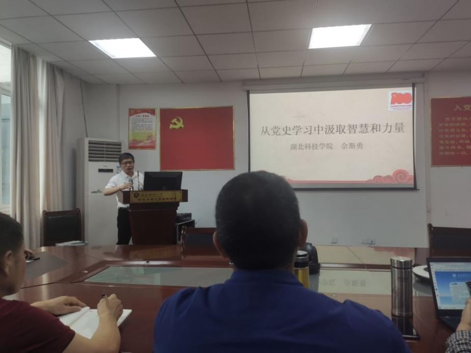 本场宣讲会由经管院党总支书记佘斯勇为全体党员讲授了一堂题为《从党史学习中汲取智慧和力量》的专题党史课。他围绕怎么看、怎么干,怎么学、学什么这个问题导向,从学习党的百年历史要以习近平总书记关于党的历史的重要论述为指导,要准确把握党的历史主题和主线、主流和本质,要深刻领会蕴含其中的宝贵经验和重要启示三个方面进行了深刻的解读。