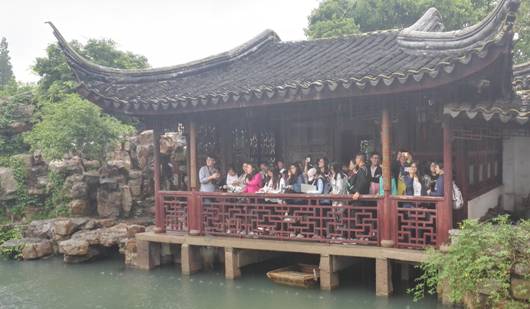 2018年4月25日上午,全体师生来到位于江苏省苏州市城区东北角的园林路3号的狮子林。狮子林几经兴衰变化,寺、园、宅分而又合,传统造园手法与佛教思想相互融合,以及近代贝氏家族把西洋造园手法和家祠引入园中,使其成为一个融禅宗之理、园林之乐于一体的寺庙园林。
