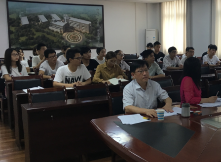 在本次的硕士毕业论文答辩中,湖北大学的冯传启教授担任答辩委员会主席。上午9点钟,冯教授宣布答辩开始,陈荣星同学和胡思颖同学对自己硕士论文进行了汇报,并一一回答了各位老师的提问。