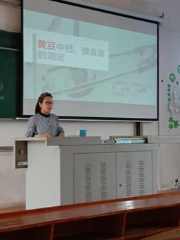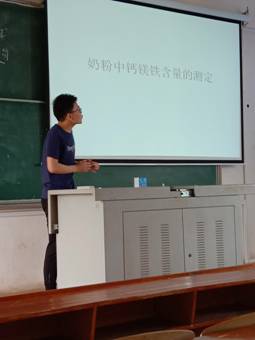 在此次汇报会举行之前,16化本班学生经过一个多月紧锣密鼓的实验工作,围绕“环境及食品中钙、镁、铁含量的测定”这一主题,经由分组——选题——设计实验方案——实验——提交小论文——小组答辩——全班大汇报等一系列流程,亲身体验“毕业设计活动仿真演习”。同时这种综合实验课程实施方式自从2015年开展以来,受到历届学生的欢迎,也受到核化生院领导老师的关注和支持,以及学校重点教改项目的资助(项目号:2018-XA-011)。