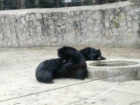 打闹嬉戏的黑熊,一改往日凶悍的形象,竟为游客表演起“摔跤”来。
