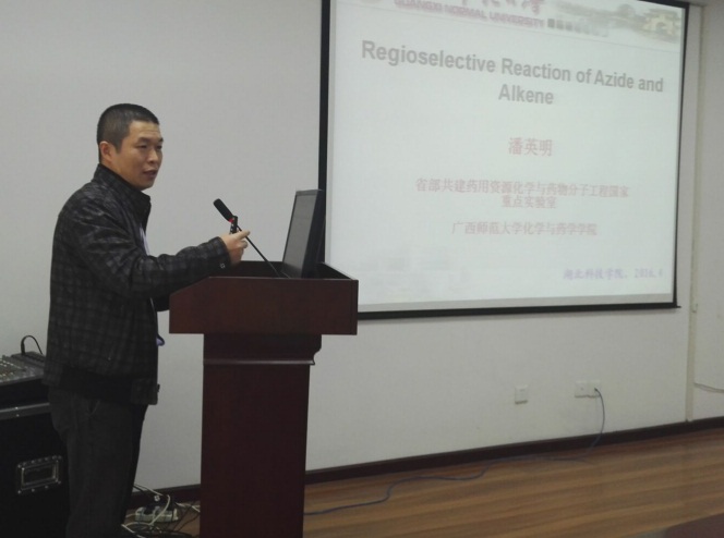(本网讯 汪刚强)4月21日,广西师范大学化学与药学学院院长,博士生导师潘英明教授应邀来我院访问交流,并作题为《有机叠氮与烯烃的选择性反应》的学术报告。