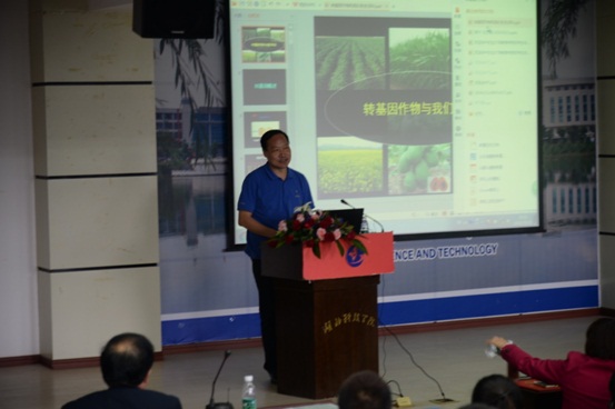 陈胜教授的讲座内容为“转基因作物与我们生活”。陈胜教授首先向大家普及了“什么是转基因”,并对转基因的历史和发展现状做了介绍,最后就大家关心的转基因安全问题做了专业的解释和相关法律法规的解读。陈胜教授的讲座采用形象生动的方式向大家解读了为什么要进行转基因研究,以及转基因与大家生活的关系,带领大家走出关于转基因传言的误区,真正了解转基因的未来发展。讲座结束之后,陈胜教授还向湖北科技学院赠送《转基因作物与我们生活》一书。