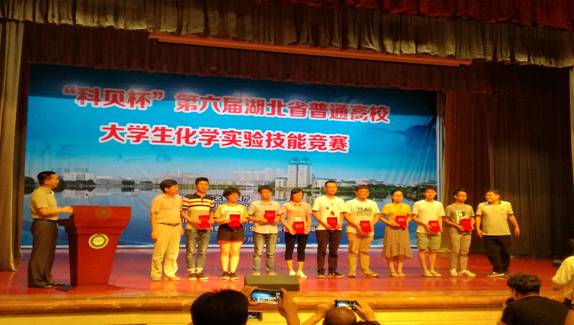 (通讯员:李芬、王军涛)2017年7月7–9日,我校核化生院学子在湖北省教育厅主办、湖北省化学化工学会协办、中南民族大学承办的第六届湖北省普通高校大学生化学实验技能竞赛(专业组)中创造历史纪录,喜获“团体三等奖”。该赛事自2006年首次举办,每届邀请省内包括武汉大学、华中科技大学等全部普通高等院校参加,迄今已连续举办六届。今年我校获得了历史性的突破,收获了标志性的成果。其中,杨亮锋同学荣获个人“一等奖”、孔洪剑同学荣获个人“二等奖”、陈洁华同学荣获个人“三等奖”,参赛的3位选手全部获奖,选手个人得分累加后又喜获“团体三等奖”(团体一、二、三等奖分别仅设一名)。